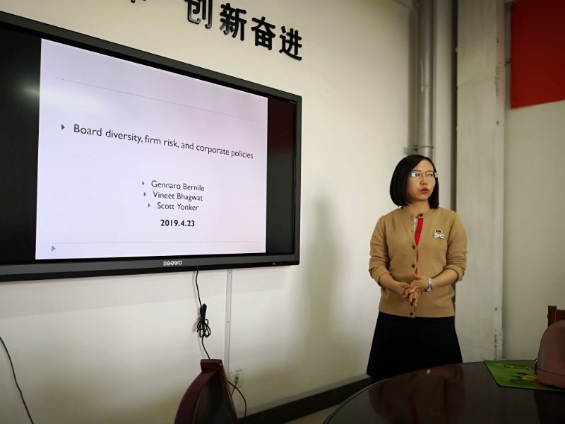 2019年4月23日下午,6776永利集团公司学术论坛由贺亚楠博士向全院师生讲解2016年发表在JFE上的一篇论文《Board diversity,firm risk and corporate policies》。文章背景是源于近年来公司董事会的多样性受到了政治和媒体的广泛关注,但此前研究大多数侧重多样性的某个方面。作者观察表明,近年来,公司董事会多样性,一方面导致决策趋于温和,但没有系统的证据表明这些影响对公司董事会的运作产生了影响;另一方面会加剧冲突并扰乱董事会决策过程,导致公司风险和波动性更高而不是更低。文章推测,更大的董事会多样性应该导致更稳定的结果。董事会多样性是否会影响公司波动性,是文章分析的核心研究问题。文章构建了董事会多元化指数,检验多元化对公司风险的影响,发现更高的多元化程度会带来更低的波动性及更好的业绩表现;但同时多元化对研发投入增加的影响也很显著。众所周知研发投入会提高企业风险,这与其他结果相矛盾。为此文章进一步检验发现多元化也会同时增加研发产出,增加研发产出会降低企业风险。此外,贺老师对文章中所采用的工具变量进行了详细介绍,增加了学院师生对工具变量使用的知识面。