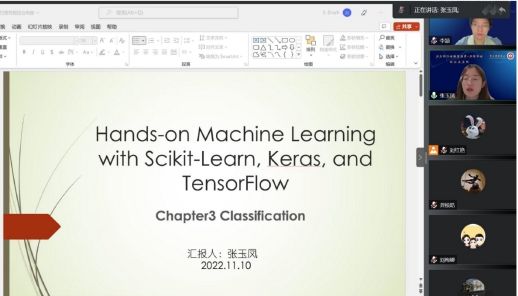 在研究方法分享环节,张玉凤博士介绍了机器学习分类估计和预测,包括检测数据集、训练二分类器、分类器性能评估等。龚帧皓老师对一些关键知识点,如二分类器、混淆矩阵、准确率与召回率、ROC曲线等进行解释,并针对路苗和刘红艳同学提出的问题进行了解答。随后宋陆涛硕士从数据来源、图谱分析等方面介绍了文本挖掘方法如何在财务领域中应用。续慧泓副经理指出通过五次机器学习的分享,不仅让同学们掌握了机器学习的基本原理,更重要的是让大家学会了一种新的研究方法;机器学习作为人工智能里比较活跃的内容,在财务管理方面也得到了大量的应用,希望大家通过此次学习,能主动把机器学习、文本挖掘等智能算法和会计、财务管理等场景有效地融合在一起。