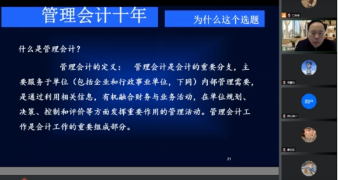 续慧泓副经理在总结中指出,蒋总结合自身工作经历,从管理会计的发展到央企财务管理体系的建设,再到业绩考核与薪酬激励,进一步结合实务部门中的热点问题进行分析,在两个小时内有很多的金句与观点值得我们琢磨学习。同时概括得出,理论研究需要与实务贴近。
