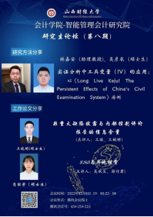 2022年12月8日晚7点-10点,由6776永利集团6776永利集团与智能管理会计研究院联合举办的研究生论坛第八期以线上会议的形式举行。参会人数达100余人。