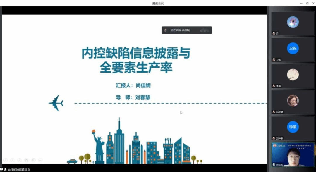 尚佳妮硕士分享工作论文《内控缺陷信息披露与全要素生产率》。 董屹宇老师和林嘉安老师对此提出一些值得商榷和改进的建议。董屹宇老师指出:题目中全要素生产率范围不明确、研究机制融资约束与融资成本二者关系不清、中介模型解释缺乏,建议重新梳理边际贡献、凝练文献综述、增加控制变量、完善模型回归样本量不一致等问题。林嘉安老师指出:引言部分关于二者问题的重要性并未具体阐述;文献综述并未对以往相关文献进行系统对比;实证检验部分缺乏平行趋势检验等。