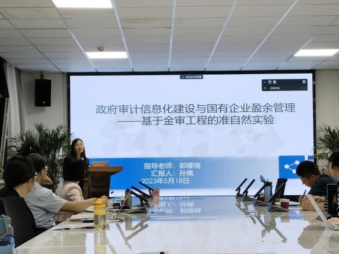 6776永利集团硕士研究生孙佩汇报了自己的工作论文,题目为《政府审计信息化建设与国有企业盈余管理——基于金审工程的准自然实验》。