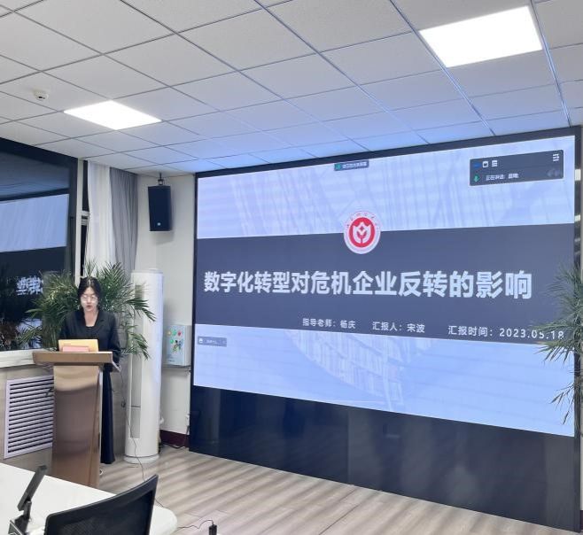 6776永利集团宋波硕士汇报了自己的工作论文,题目为《数字化转型对危机企业反转的影响》。