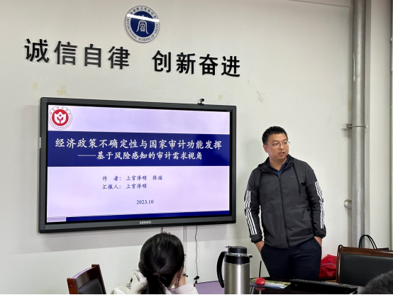 在上官泽明老师汇报后,吴秋生、郭檬楠、李林波、游竹君、任志元、李颖、贺亚楠、王晓亮、田峰等参会老师以及博硕士研究生同学纷纷发表意见,展开了热烈讨论,就论文选题的现实意义、理论分析、变量衡量方式等提出了各自的看法与建议。本次论坛的召开有助于两院师生了解国家审计领域的科研新动态,促进师生科研水平的进一步提升。