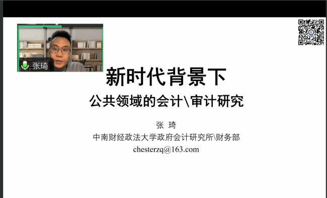 张琦教授做了题为《如何开展政府会计审计研究》的主题讲座。张琦教授从政策研究、学术研究两方面对政府会计(审计、财务)研究进行说明。首先是政策研究方面,需要关注特殊政府会计要素的核算问题,包括文化文物资产、自然资源资产、公共基础设施,政府债务与政府负债,政府成本;政府财务报告的编报、审计、分析问题,包括合并与抵销,财务报告审计 和预算执行审计等,政府财务信息的使用与分析;政府财务治理、绩效管理、内部控制、财会监督等问题。其次是学术研究方面,包括政府财务信息披露质量的测算、政府财务信息披露的影响因素、政府的内部治理机制(官员间的制衡)、政府财务信息披露的经济、政治后果。最后对政府会计(审计、财务)的一些扩展研究进行了说明。