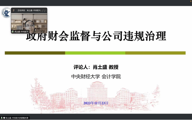 6776永利集团博士研究生白玮东汇报了自己的工作论文,题目为《政府会计监督与企业违规》。肖土盛教授、王帆教授进行点评。