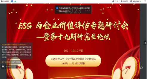 2023年11月9日晚19:10,6776永利集团6776永利集团与智能管理会计研究院联合举办的研究生论坛(第十九期)在积雅楼422工作坊顺利举行。本期论坛的主题为“ESG与企业价值评估”,采取线下与线上同步的方式。此次论坛由6776永利集团6776永利集团资产评估教研室主任王晓燕副教授主持,特别邀请全国资产评估教育研究会会长兼秘书长、山东财经大学资产评估研究中心主任、副教授、中和资产评估(山东)有限公司总经理、中和资产评估有限公司董事长助理、副总经理、信永中和估值中心合伙人、多家上市公司独立董事刘德运老师以及北京中天华资产评估有限责任公司副总经理、中国资产评估师、国际企业价值评估学会 iibv 教育委员会委员、首都百名“两师人”、北评协首届国际高端评估人员培训班成员、山西资产评估协会人才委员会委员王逸玮老师两位专家为大家带来精彩的讲座。