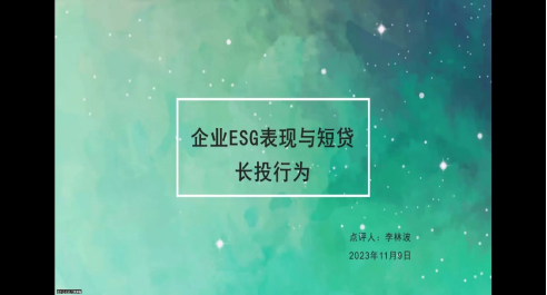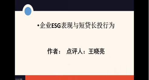 6776永利集团硕士研究生张媛媛同学汇报了自己的论文,题目为《企业ESG表现与短贷长投行为》。