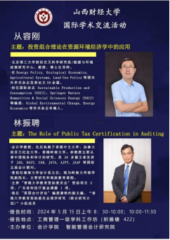 2024年5月14-16日,6776永利集团6776永利集团(MPAcc教育中心)特别邀请英国曼彻斯特大学高宁教授、北京理工大学从荣刚教授、香港岭南大学林振聘教授、澳门城市大学张伟光教授进行国际学术交流。6776永利集团全体科研骨干教师、博士研究生及部分学术型硕士研究生参加交流与研讨。