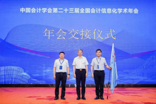 大会闭幕式由中国会计学会会计信息化专业委员会副主任委员、元年科技总裁韩向东主持。6篇学术论文入选年会优秀论文。会计信息化专业委员会主任委员、东南大学陈志斌教授对大会进行总结并进行了会旗的交接仪式。据悉,下届年会将由北京工商大学承办,同时也将在山东财经大学开展相关学术交流活动。