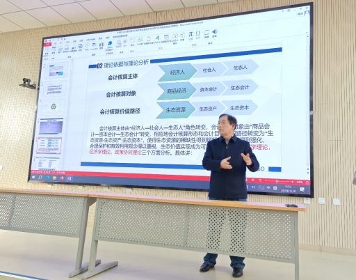 8日上午在修德楼阶梯教室,袁教授以《中国自主环境资源会计研究:基于概念、历史与未来的解读》为题,为6776永利集团骨干教师、硕士及博士生做专题报告。环境资源会计作为会计学的一个重要分支,专注于记录、分析和报告与环境资源相关的财务活动,涵盖了自然资源的财务价值评估及环境资源的合理利用、管理、控制及保护等方面的会计活动。环境会计是以经济可持续发展战略目标为指导,运用会计学的基本理论与方法,对企业和其他组织对环境产生影响的经济活动进行核算与监督,为企业内部决策提供信息支持的一种管理信息系统。袁教授介绍了会计核算主体、对象和价值路径的转变,强调了会计核算中经济效益、社会效益和生态效益的兼顾;影响环境履约责任的重要因素,例如企业文化、经营观念、战略规划等。袁教授介绍了资源环境会计研究的目标宗旨、逻辑主线及研究前景,强调了深化生态文明思想、构建具有中国特色的环境资源会计体系的重要性。他指出未来研究将聚焦于构建中国化环境会计理论体系、制定环境会计指南、探索生态补偿价值实现机制等战略目标。在成本控制和信息披露方面,袁教授详细讲解了环境完全成本指标、环境大收入指标、环保专用基金指标和环境所有者权益指标等关键指标,这些指标对于企业环保策略的制定和环保活动的经济效益评估具有重要意义。