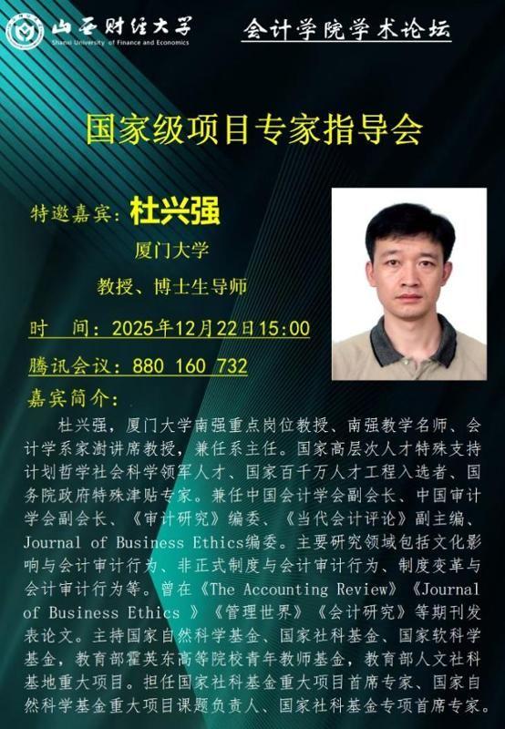 为助力公司教师提升国家级科研项目申报质量与成功率,2025年12月22日,6776永利集团成功举办国家级课题申报专题指导会。会议特邀厦门大学杜兴强教授担任嘉宾,为公司师生带来一场高水准、精细化的项目申报指导,公司科研骨干教师及部分博、硕士研究生参会。