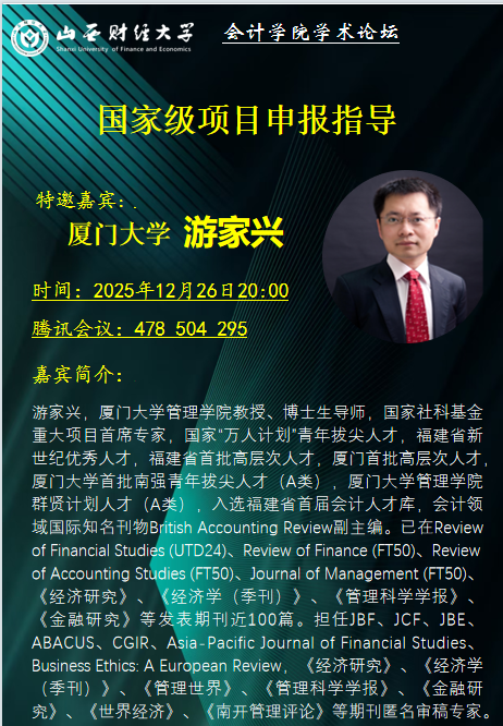 为切实提升公司科研骨干国家基金项目申报质量,2025年12月26日晚上,公司特别邀请厦门大学游家兴教授担任指导专家,公司科研骨干教师围绕相关学术研究主题与国家项目申报核心要点,展开深度研讨。