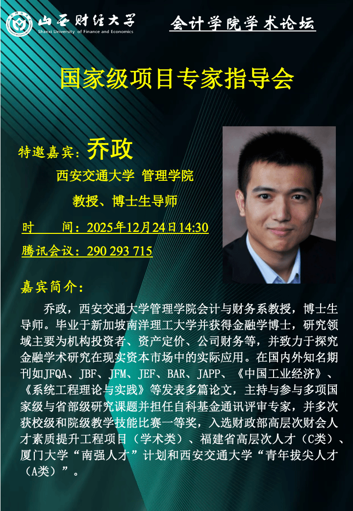 为帮助学院青年科研骨干教师及硕博研究生精准把握国家级课题申报要点,规避申报误区,提升申报质量与成功率,12月24日,公司特别邀请西安交通大学乔政教授担任主讲嘉宾,举办国家级课题申报经验交流分享会。