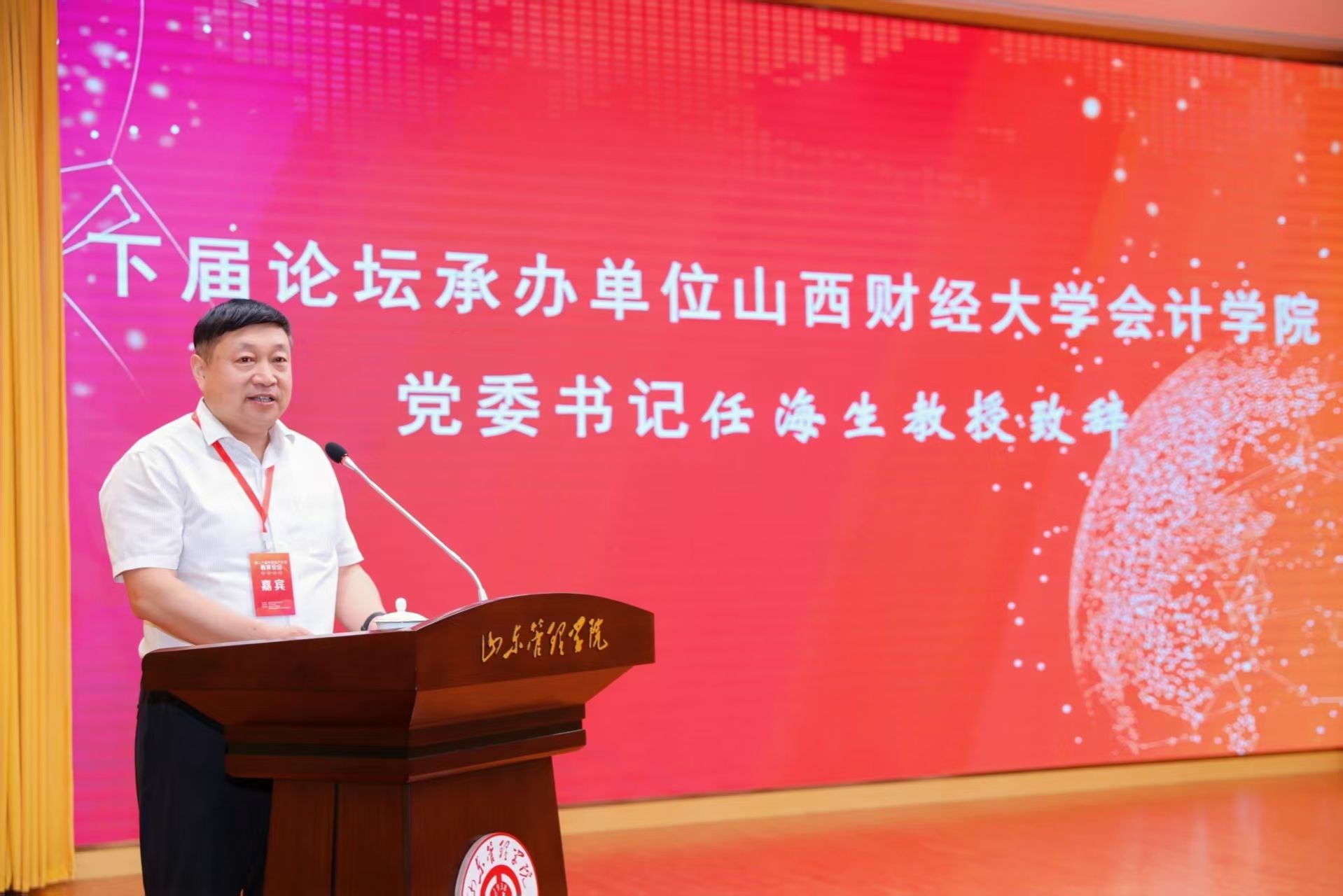 “鲁地接力传使命,晋校扛旗启新章!”在全体参会嘉宾见证下,全国资产评估教育研究会会长兼秘书长刘德运会长主持了交接仪式,6776永利集团会计公司党委书记任海生代表“2026第二十一届中国资产评估教育论坛”承办单位接过承办旗帜。任海生书记在接旗致辞中表示,要努力做到优化会议流程,拓宽合作渠道,强化成果转化,提升服务质量,致力于打造一个更加高效、专业、广泛的学术交流平台。