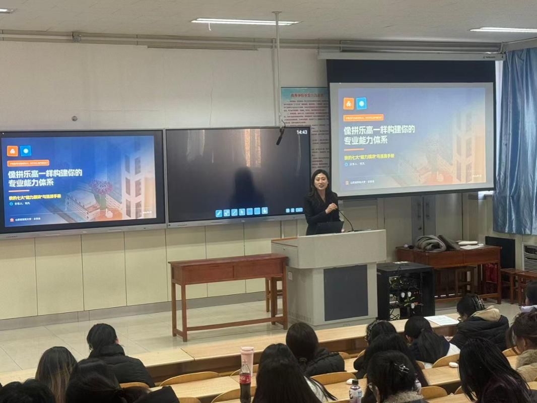 讲座中,刘凡以“乐高拼搭”为核心隐喻,提出财会金融能力体系的“四层构建模型”:地基层的学术基础是能力搭建的起点,需夯实本硕专业课程与高绩点积累;核心结构层的专业资质是体系支柱,CPA、法考、CFA 等七大证书构成能力大厦的关键模块;功能扩展层的职业应用将资质转化为实战能力,需通过优质实习与职场历练实现知行合一;连接加固层的通用技能则通过英语、计算机、沟通能力等让体系更稳固。她强调,传统零散化学习如同 “杂乱的储物箱”,而模块化构建则能打造 “有序的乐高城市”,实现知识的可组合、可扩展、抗风险与个性化。