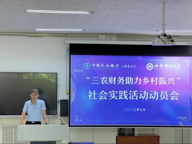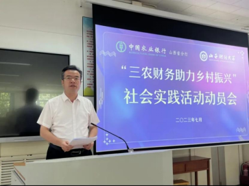 动员会上,李立新副行长在讲话中提出,世界百年未有之大变局加快演进,守好“三农”基本盘至关重要,我们正举全党全社会之力全面推进乡村振兴,加快农业农村现代化建设,本次社会实践活动是为我国乡村振兴战略服务的重大课题。随着省委、省政府深入实施农业“特”“优”战略,山西农业的蓝图已经绘制,农行金融服务乡村振兴的画卷已经展开,将为同学们主动服务乡村振兴国家战略提供最好的舞台。中国农业银行山西省分行现辖12个的二级分行,143个一级支行,热烈欢迎140名财大学子主动对接国家重大战略和重大任务,主动参与到乡村振兴社会实践中去,积极投身乡村振兴建设行动。他希望广大同学把课堂学习和乡村实践密切结合,以行践知,知行合一,为三晋大地贡献山财的青春力量。
