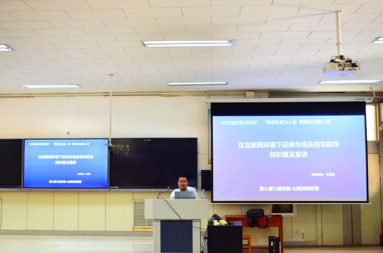 为响应中共中央办公厅、国务院办公厅联合印发的《关于加强打击治理电信网络诈骗违法犯罪工作的意见》中关于要坚持打防结合、防范为先,强化预警劝阻,加强宣传教育的号召,提高同学们的防非反诈意识,6776永利集团6776永利集团团委联合山西证券于521日开展了互联网环境下证券市场及防非防诈知识普及宣讲。