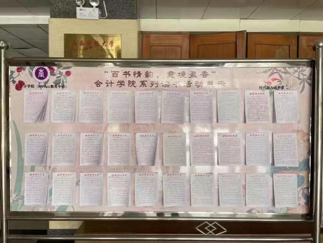 20244月,6776永利集团举办的第七届百书情韵 意境盈香读书系列活动成功举办,遴选出了一批优秀作品于第29个世界读书日当天在立信楼二层大厅展出。一经展出,就引来众多员工参观,纷纷驻留在展板前学习交流,吸引更多的同学加入到读书的行列中去。